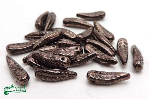 Bird Feather Glasperle, 5×17 mm, Bronze Luster (25 Stück)