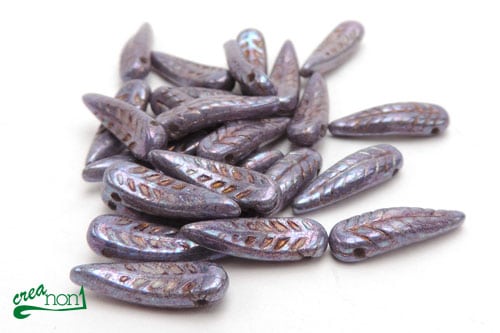 Bird Feather Glasperle, 5×17 mm, Purple Bronze Luster (25 Stück)